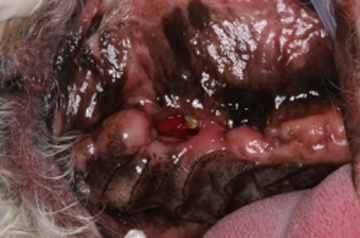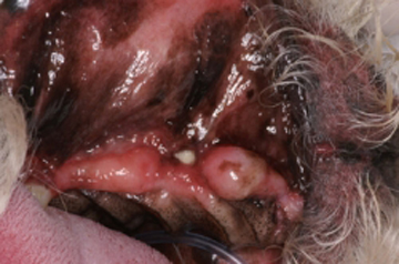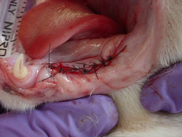 Otro problema muy común en perros es la presencia de fístulas oronasales. La fístula oronasal es una comunicación patológica de la cavidad oral con la cavidad nasal. Regularmente el paciente muestra una rinorrea unilateral que puede ser serosa, mucosa o sanguinolenta. Clínicamente se observa una pequeña abertura en la cavidad oral de la cual puede salir una secreción serosa, mucosa o sanguinolenta. La cavidad puede estar llena de pelo y detritus aunque algunas veces es poca su contaminación. La abertura es la punta de un iceberg, ya que la lesión ósea es regularmente mucho mayor. Se tiene la creencia de que puede cerrarse quirúrgicamente manejando solo los tejidos blandos pero eso es imposible. Se requiere un tratamiento quirúrgico de manejo combinado de tejidos duros y blandos para poder cerrar la fístula. Las fístulas oronasales pueden invadir el globo ocular, el seno maxilar y la cara, por lo que es muy importante realizar un diagnóstico temprano y la rápida resolución quirúrgica del defecto. El manejo de tejidos requiere realizar la extirpación total del tejido patológico de la cavidad nasal y de otras estructuras invadidas. Se requiere además de la ostectomía del tejido involucrado con una osteoplastia en donde los bordes del defecto óseo deben quedar sin ángulos cortantes y bien limados. Regularmente se requiere realizar colgajos de avance o de la forma mejor adaptable dependiendo del defecto. Otro problema poco común de origen congénito es la presencia de paladar hendido el cual puede ser ligero hasta muy severo. Estos casos regularmente se manejan como si fueran fístulas oronasales pero hay que tener cuidado con la elección en la decisión de preservar la vida de un espécimen en estas condiciones porque son pacientitos que nunca van a tener un desarrollo adecuado excepto de que el defecto sea lo suficientemente pequeño para cerrarlo en una sola intención.
