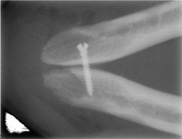Separación de Sinfisis mandibular por enfermedad periodontal. Colocación de tornillo de titianio