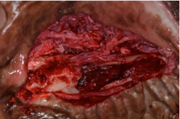 Necrosis ósea. Cierre de Fístula Oronasal con membrana de colágeno y xenoinjerto