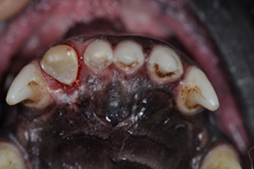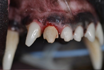Los implantes de titanio son unos aditamentos que se colocan en el tejido óseo de los maxilares y que por sus características estructurales y fisicoquímicas se osteointegran provocando la anquilosis del implante al tejido óseo. En el perro el tiempo de la osteintegración es de 2 meses aproximadamente, la cual es mucho más rápido que en el ser humano que es de 4 a 6 meses. El implante funciona como una raíz dental la cual puede ser rehabilitada para que una corona dental salga del mismo hacía la cavidad bucal. Por lo tanto, los implantes dentales se colocan en zonas donde se perdió un diente o nunca se formó y que el propietario o médico desea que su paciente tenga el diente para mejorar su función y estética. Los implantes tienen una cuerda externa con la cual se atornillan al hueso y una cuerda interna de la cual se adapta el aditamento protésico que retendrá la corona en la cavidad bucal. Las coronas que se colocan en los implantes pueden ser metálicas, metal porcelana, de porcelana o de zirconia.